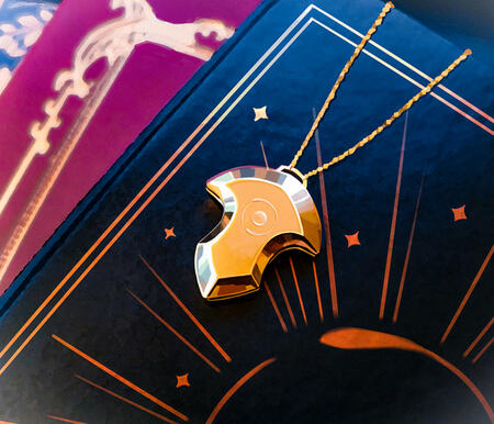 Based on Azem's crystal from the hit MMORPG Final Fantasy XIV, this locket will safeguard your hopes and prayers! Crafted from sterling silver and plated in 18K gold, rose gold, or gunmetal, it will accompany you well on your unending journey. The locket pendant measures 1 inch tall and is engraved with the legacy symbol on the back. Includes a gold plated sterling silver chain. Clutch it close to your breast, and wish upon it with all your heart!